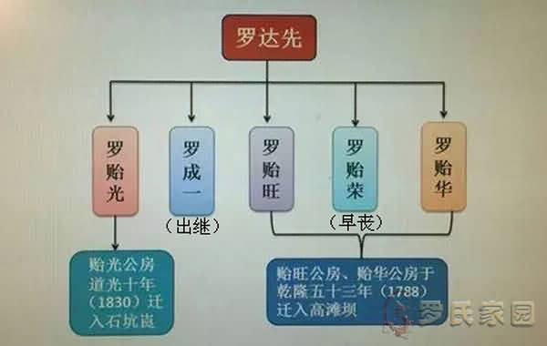乾隆五十三年,因新、恩、开(新宁、恩平、开平)土客之争,贻华妻江氏祖婆率贻旺、贻华两房子侄,背负祖骸复迁阳山(今连南)寨岗高滩坝。道光十年,贻光房必祯公之子罗国康、罗国宁、罗国容三兄弟举家从新宁珍珠坪迁入石坑崀,至此,达先系贻光、贻旺、贻华三大房齐聚连阳寨岗,开启了寨岗罗氏宗族百年大发展的宏伟篇章。