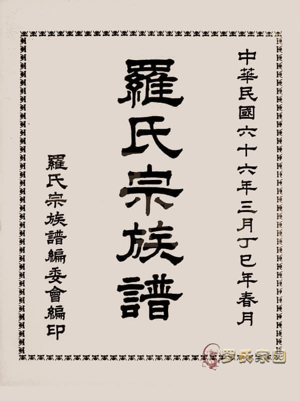 皇明万历十四年丙戊岁春王甲辰朔吉00000000 五十八世孙罗钦书0000000000000000 水流宗谱序言 人之有祖,族之有宗,犹如木之有本,水之有源,惟木之本,水之源,乃属自然现象,而宗族之繁衍延绵,端赖历代祖先开拓奋斗,苦心经营,方有日后之宏远规模,光明景象,此为祖宗德泽,实不可忘也。 我罗族得姓,肇于周初,受封宣城,国号曰罗,后徙枝江,再迁湘阴,子孙相承,以国为姓,其后散处江汉襄潭豫章等地,而以豫章一派独盛。迄后中州板荡,宋室南渡,避地闽粤,递传至洪德公一支,由东韩江而分布潮惠;贵公一支由南雄而散殖广肇,繁衍生息,蔚成巨族,溯其流派,则同出于豫章,故罗姓祠堂均曰"豫章堂",前人记述,信实昭彰。 至我水流一族,原居于粤东惠州府陆丰县之石碓头,聚族而居,世代以农为业,富有刻苦耐劳精神。至清朝中叶,嘉庆年间,先祖弘乐公,携其二子,即天芝公、华芝公,渡海来台,从事垦殖,定居于今之桃园县新屋乡赤栏村廿九号现址(俗称"老屋")遂为我族在台之发祥地也。此外在今之石磊村水流四号称为"上罗屋",在今之赤栏村卅五号称为"下罗屋",当时拥有三条龙岗之地,世代相传,均持忠厚勤俭之旨,至今廷绵愈广,发荣未已。 修编族措,其旨在乎明伦祀祖,纪世族之源流,慎终追远,以期不忘祖训,策励后世子孙,负承先启后之责任,继续发扬光大,进而为国家尽忠,为民族尽孝,以显祖德,以耀宗族。 饮水思源,素为我民族之美德,叶落归根,则表示不忘本之意,在此国家多难,倡导复兴中华文化声中,吾人重修族谱实有深长之意义存乎其中。 本族谱修编,于民因六十一年元月展开调查,翌年十月初步加以整理,六十三年十一月暂定草稿,再经多方搜集查询,将阙漏资料补充完备,至六十五年八月定稿,同年九月付梓。费时五年,荷承诸位同宗提供史料与族长之多方督促,方迄于成,在此表示十二万分之衷心感谢!族繁地广,疏漏之处在所难免,尚祈先辈不吝赐教,俾便再版时予以辅正。