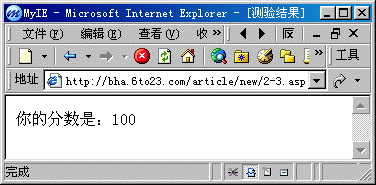 关大哥:本来也不难嘛,不过这只是最简单的一个互动文件,在大多数情况下,我们都需要建立一个专门的ASP文件来处理用户提交的数据,现在网络上很流行在线测验,我们就来做一个简单的在线测验试试。