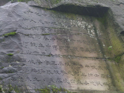 重庆市铜梁县城东北5里的罗睺山捧云石正面,现存有一块残缺的碑刻,通过对碑文的辨识,还依稀可以知道这是一块在重庆作为国民政府陪都时,国民党中央军校学员戊寅(1938)年春到此游历时所镌,碑文中隐隐透出战败的沮丧和对国民党政权前途的绝望。立碑人我们已无从考寻,但它却吸引我们去追寻铜梁这片热土在中国革命史上曾经有过的辉煌……(左图,鼠标指向放大)