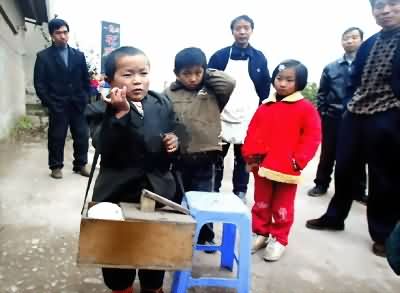 罗卜国,1988年生,四川达县人。3岁时,因学步缓慢,父母带他去乡村医院求医。吃了一阵含激素的药后,走路倒是会了,不过6岁那年,个子又停止增长了——1.1米的身高保持至今;体重也没什么起色,跟当年一样,20公斤。