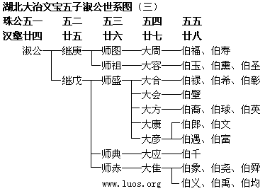 文宝公云绶公葬龙山有碑。宝公兄弟六人,即文珠、文宝、文珊、文玉、文瑚、文渊等六公。于明朝嘉靖年间,因人多随母明氏太婆迁至毛潭里即大冶地区分居落业。其六子渊公留居阳新长乐园,文珠公分居大冶城附近枫树铺,文宝公居大广山下莘野庄大塘罗。落业后山青水秀,环境优美,人丁繁衍,人才辈出。第四世师尹公字莘野授四川重庆府彭水县左堂署理,后升任本县正堂。有史以来能人不少,现有大学生14人,其中留学法国1人,总工程师1名,工程师2名,副科级以上干部3人。