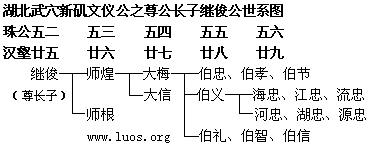 湖北武穴新矶文仪公之尊公长子继俊公世系图