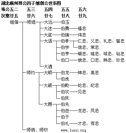 湖北蕲州尊公四子继偕公世系图