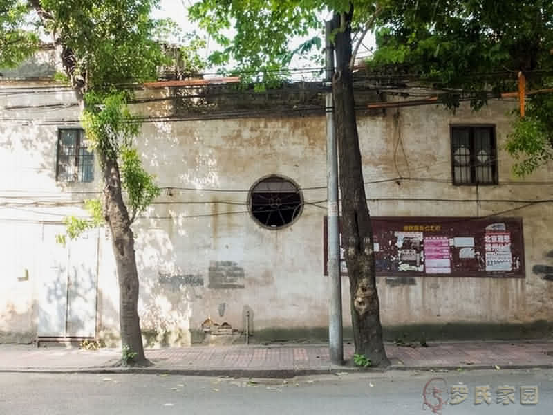 建筑外墙砖砌抹灰,立面正中开一圆窗,大门偏居右侧。