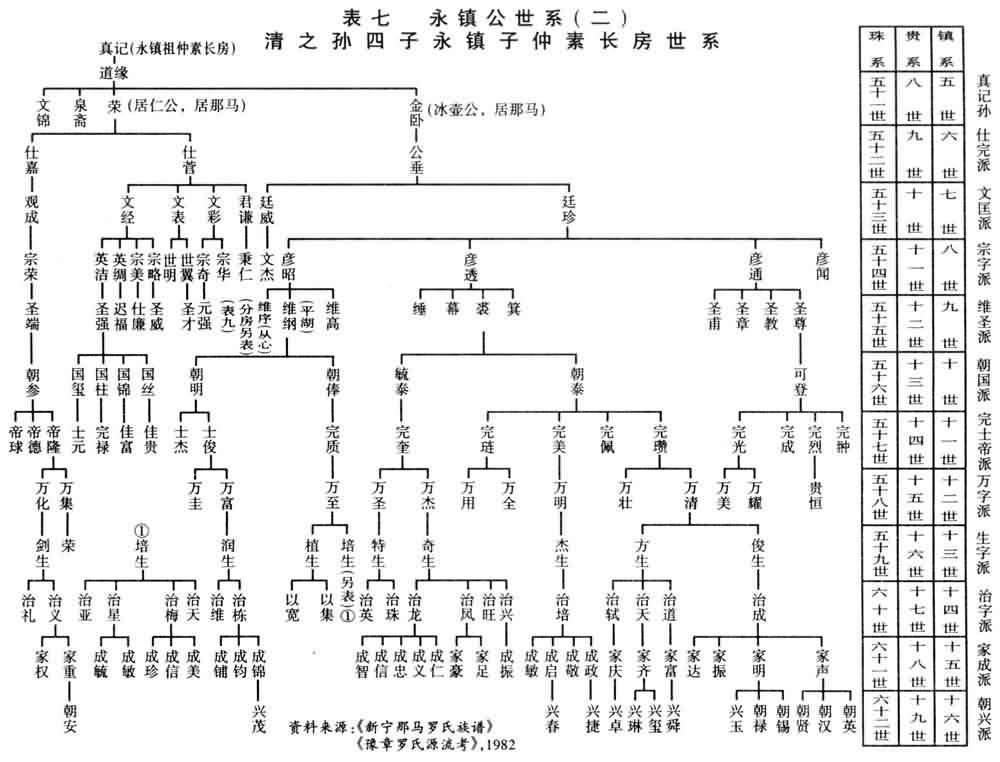 该谱记至永镇系之十九世。罗贵系廿二世。
