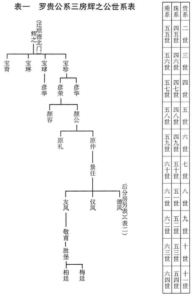 附图:表一罗贵公系三房辉之公世系表