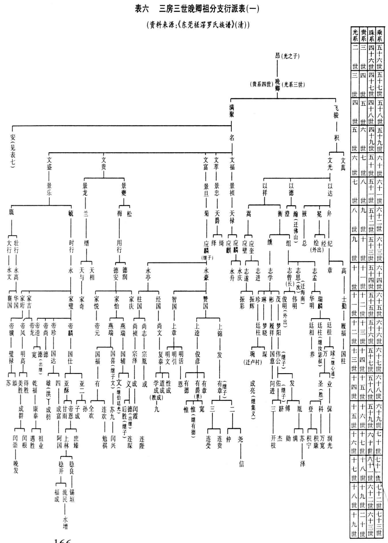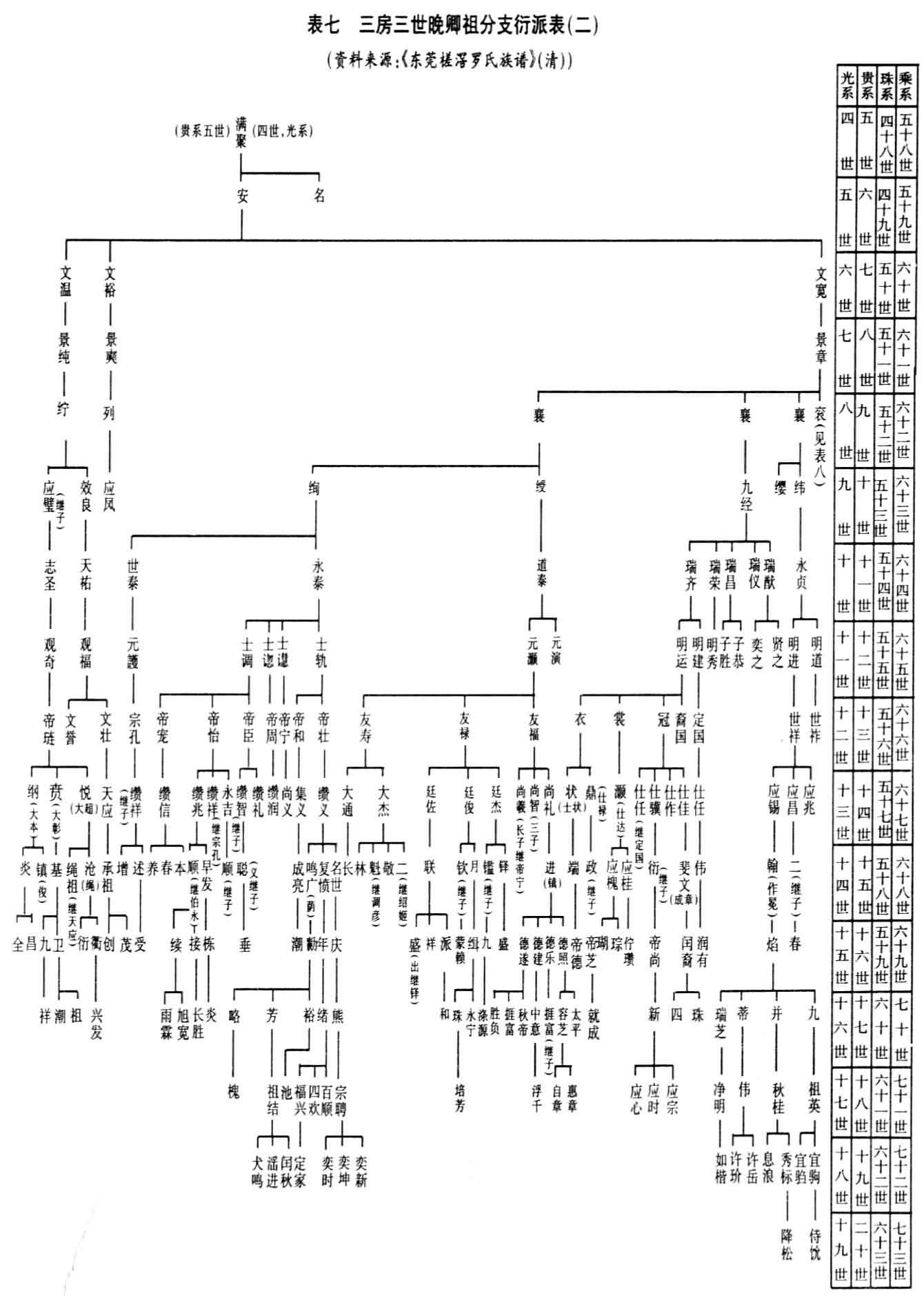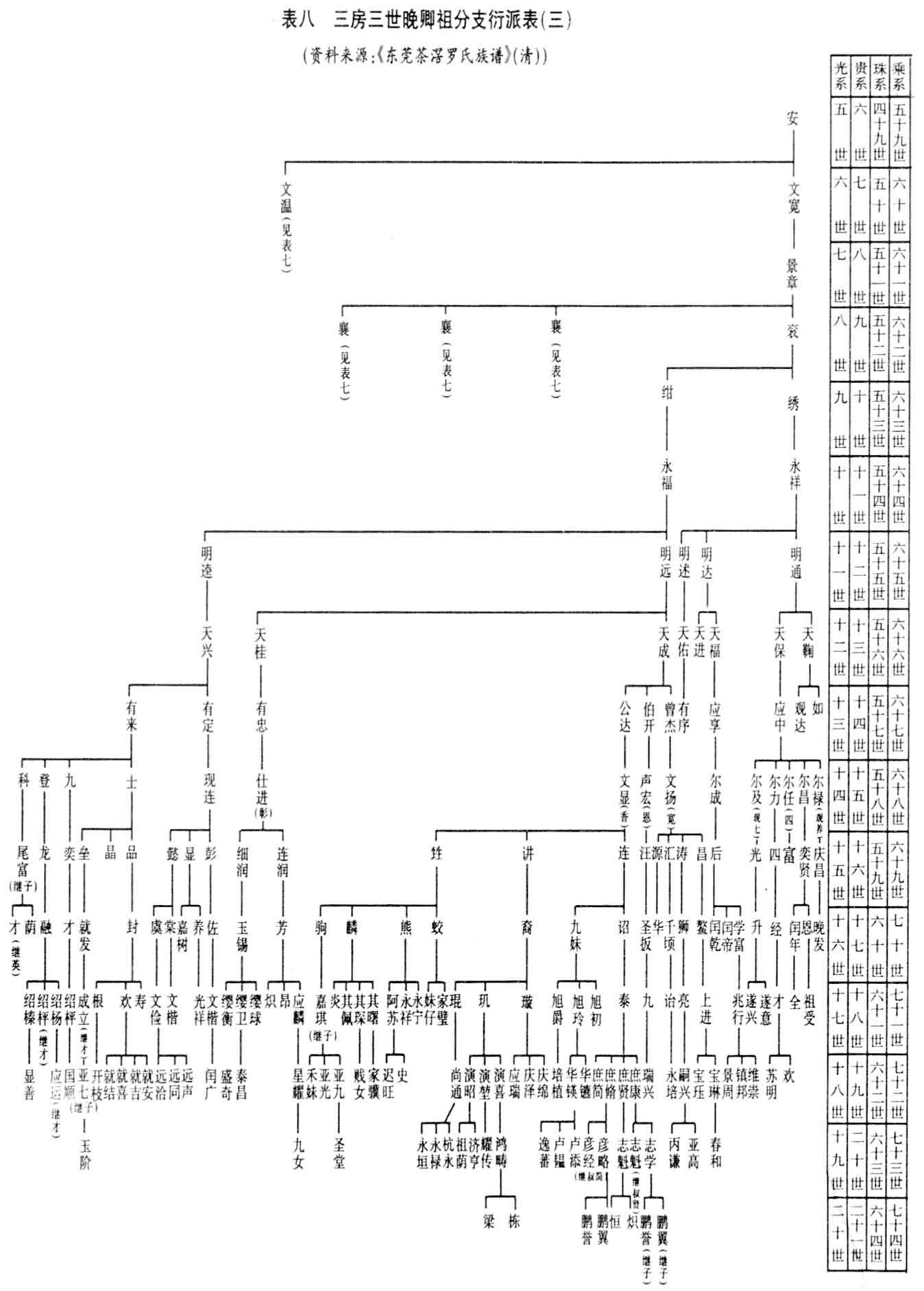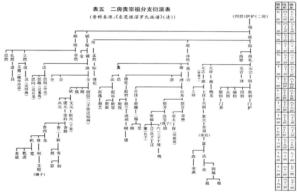 附图:表一罗贵四子光之迁东莞槎窖世系