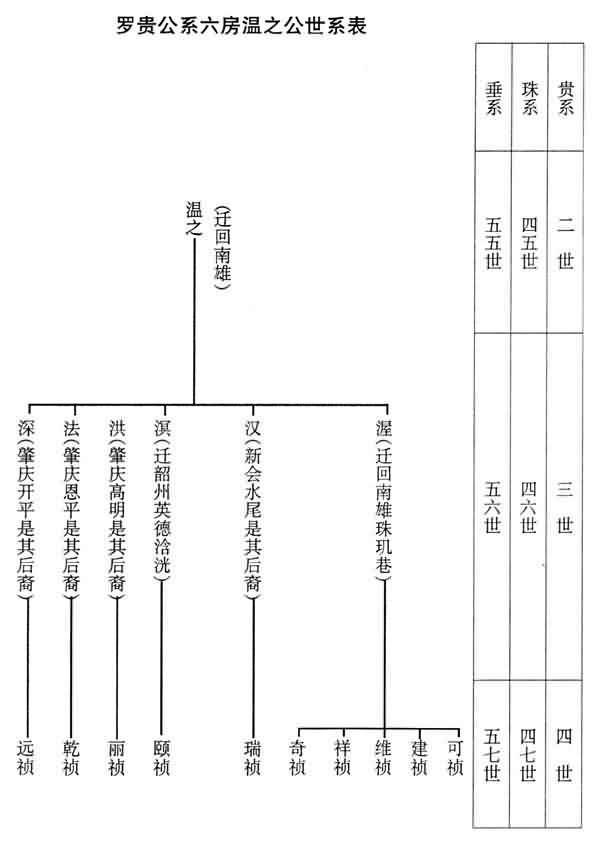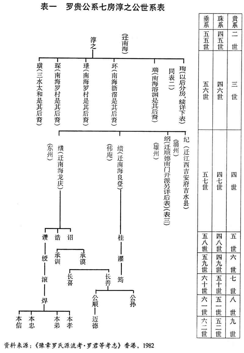 二、又进一步从罗贵南迁过程,查证其子孙分布情况,即: